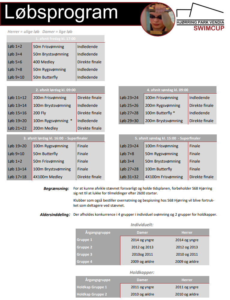 Så er det tid til tilmelding, til PARK VENDIA SWIMCUP 2026.